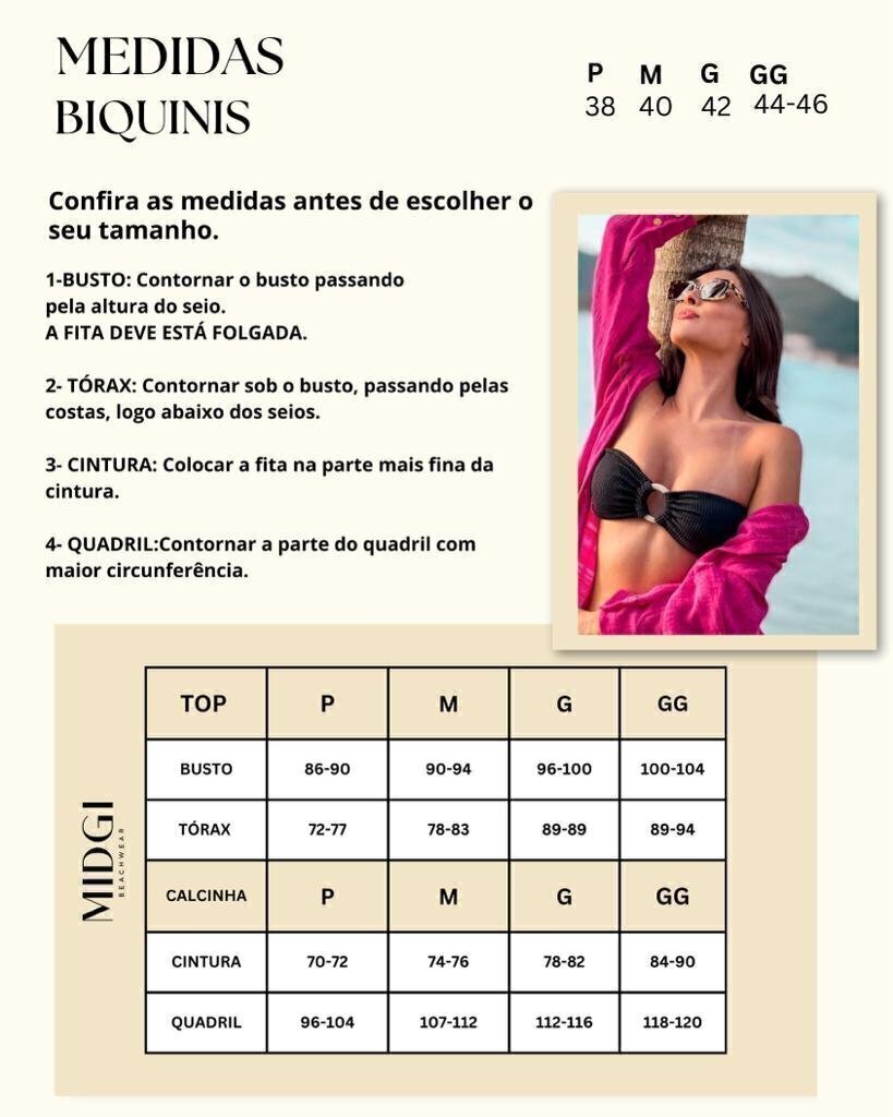 | Tamanho | Busto (cm) | Cintura (cm) | Quadril (cm) |